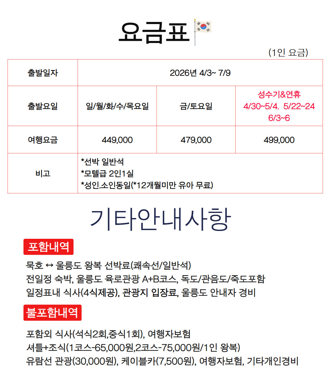 | 여행기간 | 2026년 04월 24일 (금) ~ 2026년 04월 26일 (일) 2박 3일 |