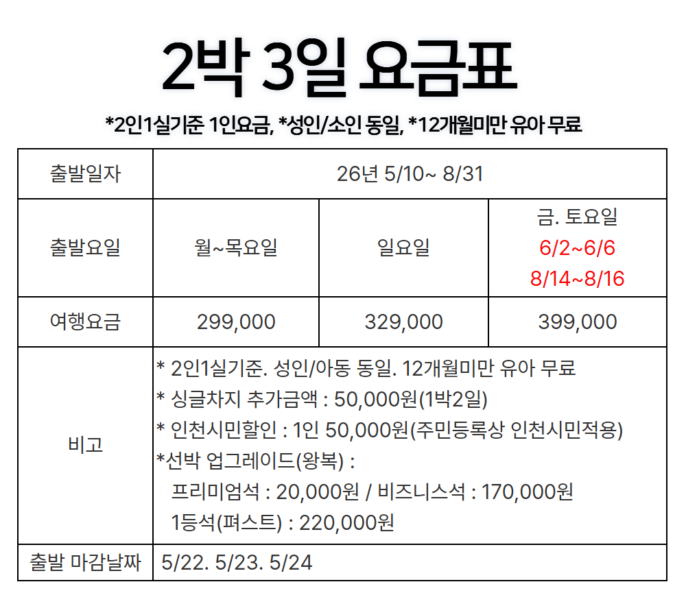 | 여행기간 | 2026년 05월 10일 (일) ~ 2026년 05월 12일 (화) 2박 3일 |
